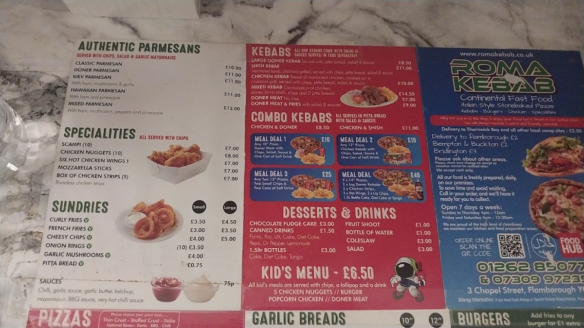 Introducing Roma Kebab, a gem located at 3 Chapel St, Flamborough, Bridlington. This eatery is passionate about delivering quality food with a heartwarming touch. Their menu boasts a range of mouthwatering options, primarily focusing on scrumptious Southern Fried Chicken and classic kebabs that leave your taste buds dancing.